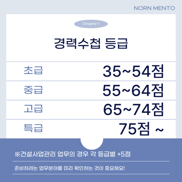 | 건설기술인협회 경력점수 계산 초급·중급·고급 기준 쉽게 정리 (0) | 2025.11.13 |