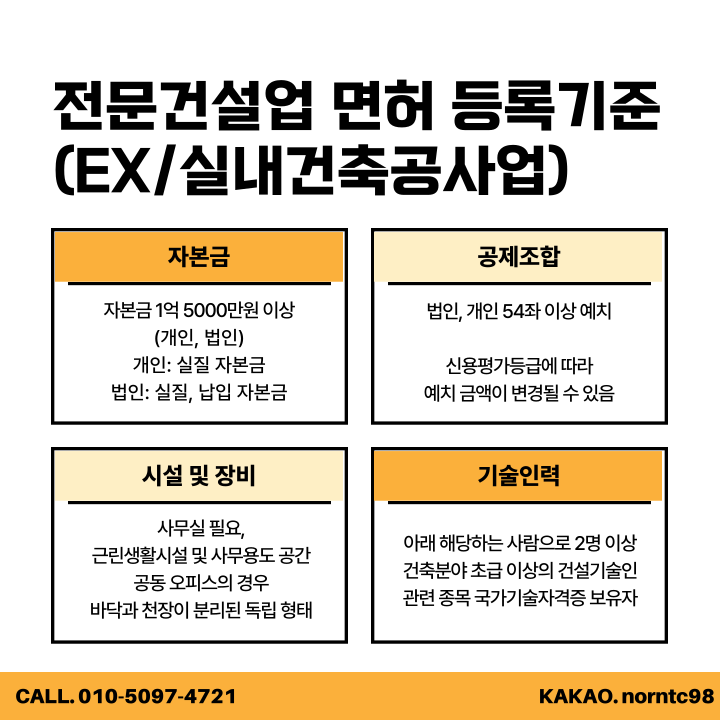3. 전문건설업 면허 등록조건 (예시: 실내건축공사업)